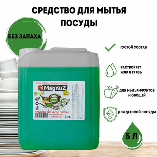 Моющее средство для посуды 5л Magnuz, 100% БИО, не вызывает аллергии.