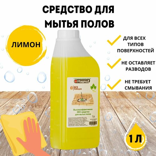 ЭКО-средство для мытья пола 1 литр. Антибактериальное концентрированное моющие средство с ароматом лимона Magnuz-PRO