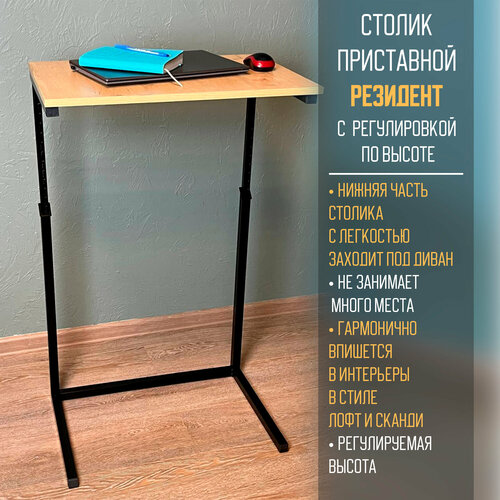 Столик приставной резидент с регулировкой по высоте, 600х400х700-1000, цв. черный матовый/бунратти