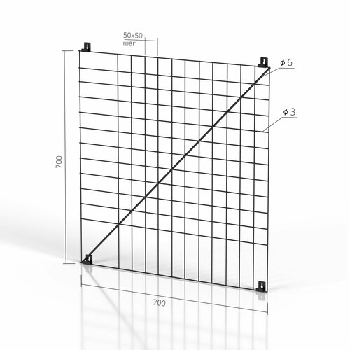 Органайзер-решетка, мудборд GoodMood диагональ 700х700, ячейка 50х50 мм, цв. черный матовый