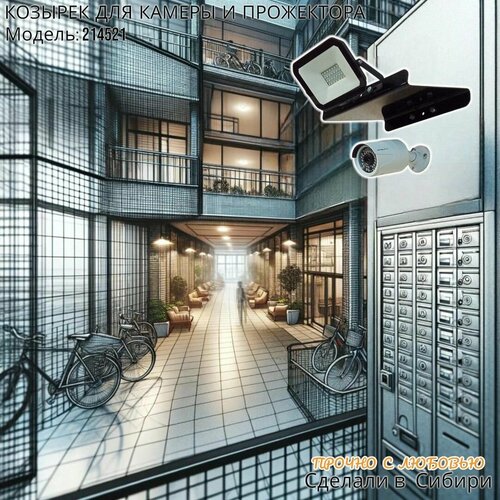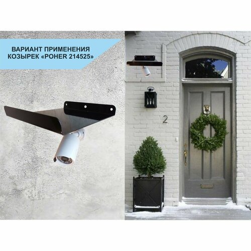 Козырёк для камеры наблюдения с креплением для прожектора "MAIMA-214521" прочная сталь защищает от дождя, снега и солнца, вылет 18см, ширина 24см