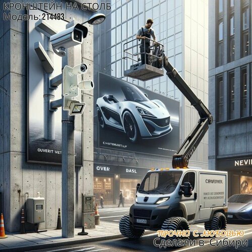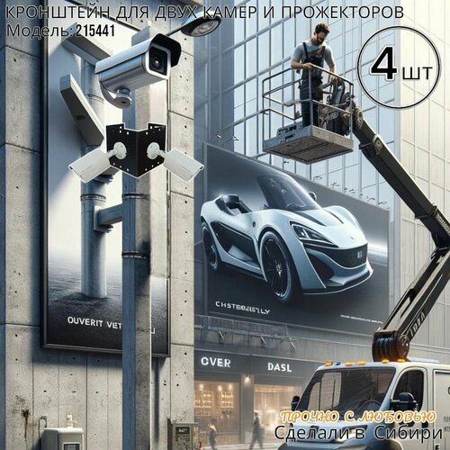 Набор из 4шт, кронштейн на столб для двух камер видеонаблюдения и прожекторов MAIMA-215441 прочная сталь, под крепление бандажной СИП-лентой