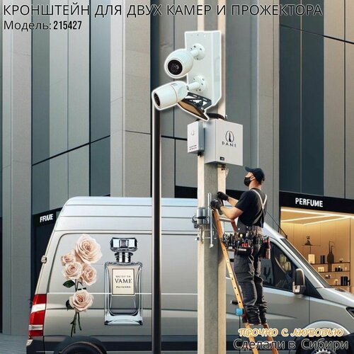 Кронштейн для двух видеокамер и прожектора на столб с пластиной для разводной коробки MAIMA-215636, прочная сталь