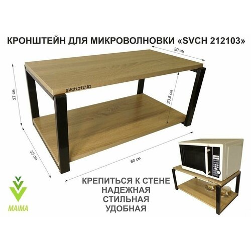 Кронштейн для микроволновки, 25см черный "MAIMA 212103 полка под микроволновую печь, 60х30, дуб
