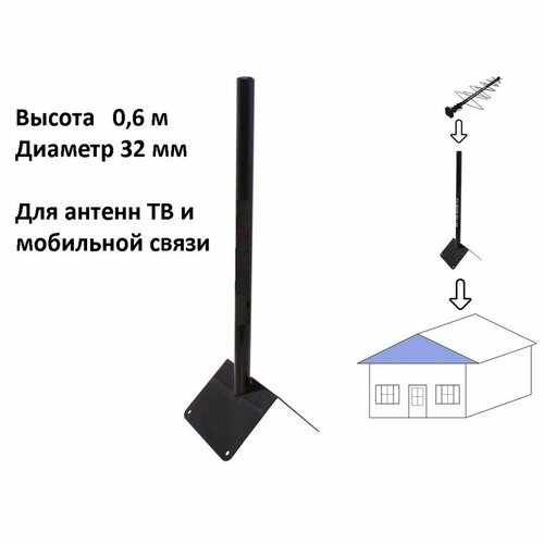 Кронштейн антенный на конёк крыши для телевидения и мобильного интернета "MAIMA-214068" черный высота 0,6 метра