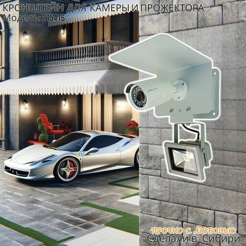 Кронштейн для камеры наблюдения с стальным гермобоксом, защитным козырьком и переходной пластиной для прожектора MAIMA-215416 прочная сталь, крепится к стене
