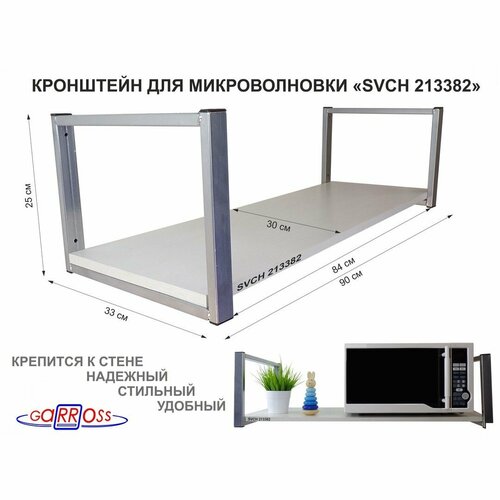 Полка для микроволновой печи MAIMA 213382, размер-90х30см, высота-25см, цвет-серебристый и сосна выбеленная