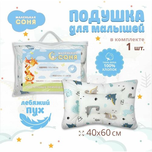 Подушка 40*60 Лебяжий пух для новорожденных Маленькая Соня Динопупсики