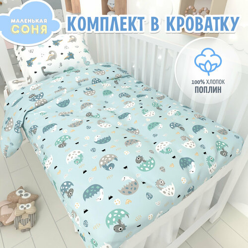 Постельное белье в детскую кроватку Маленькая Соня Динопупсики/хлопок / поплин