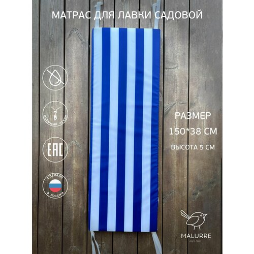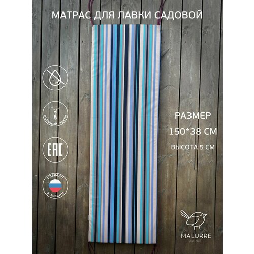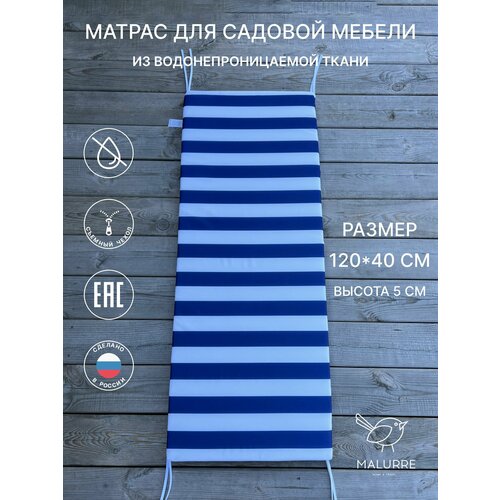 Матрас для лавки садовой на скамейку 120*40 см синяя полоса