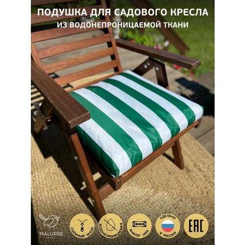Подушка для садового кресла, подушка на стул с завязками 47*47 см зеленый