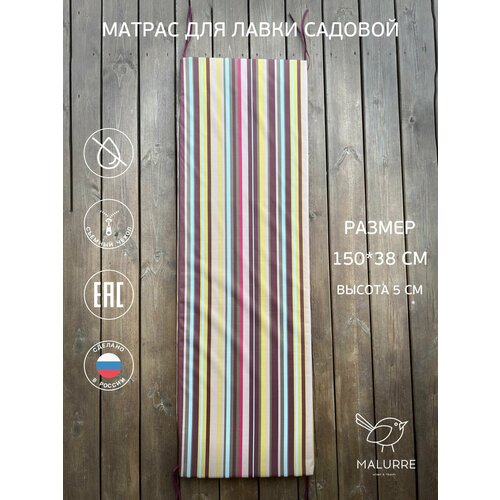 Матрас для лавки садовой на скамейку 120*40 см коричневая полоса