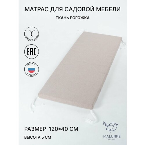 Матрас для лавки садовой на скамейку 120*40 см бежев