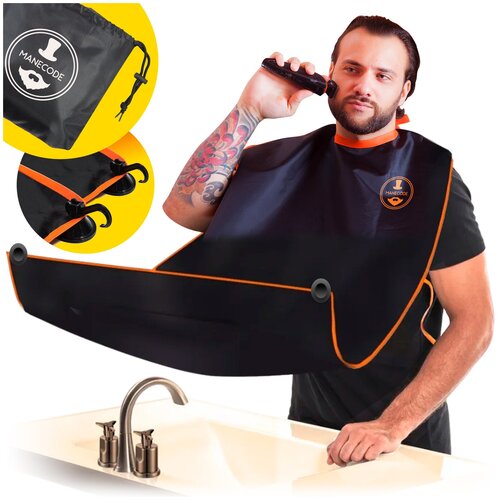 Фартук для бритья бороды и стрижки волос Manecode с супер-надежными присосками на зеркало 600008791969