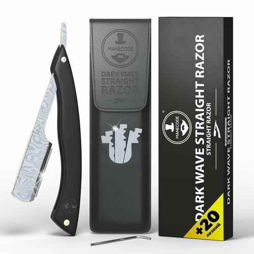 Опасная бритва для мужчин Manecode с 20 сменными лезвиями - Шаветт из нержавеющей стали с покрытием гальваностег, рукоятка из черного сандала, чехол из экокожи 101877862057