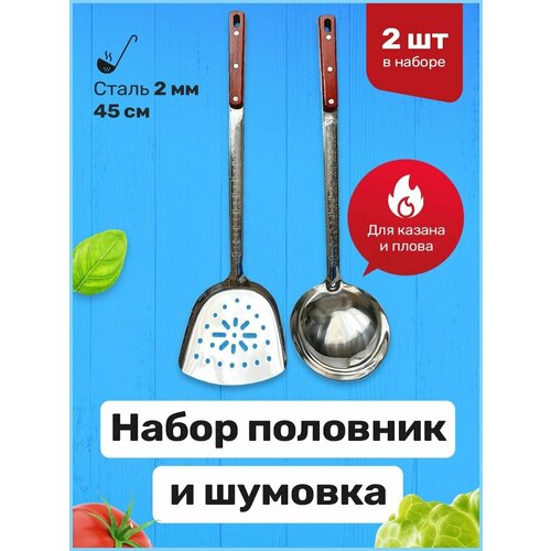 Половник и шумовка для казана, набор половник и шумовка для плова 2 шт, набор половников больших