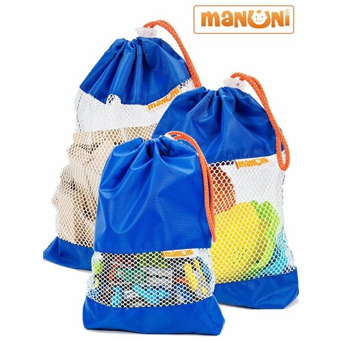 Мешок сетка детский, Manuni, набор из 3 штук разного размера, для одежды, обуви, вещей, игрушек, канцелярии и мелочей