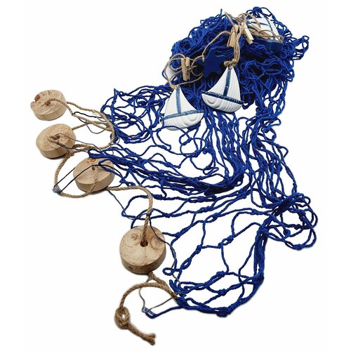 Морская Сеть декоративная 2х1м поплавки, кораблики BLUE