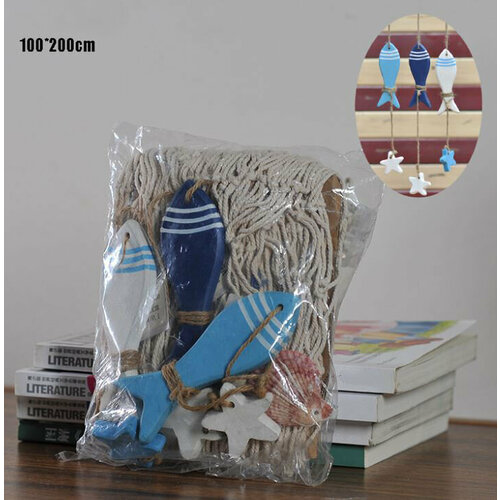 Сеть морская декоративная 2х1м Рыбки, звезды, ракушки