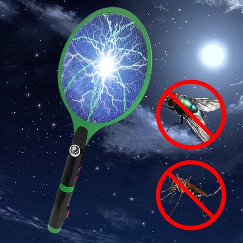 Электрическая мухобойка на аккумуляторе с фонариком, 51 см, зелёный