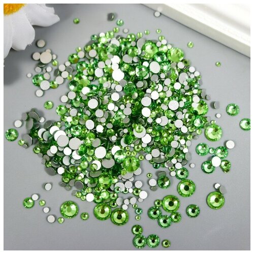Декор для творчества стекло "Стразы усечённый конус. Светло-зелёные" d=1,5-6,5мм н-р 1000 шт 74595