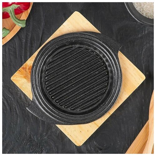 Сковорода "Круг. Восток Гриль", d-15 см, на деревянной подставке