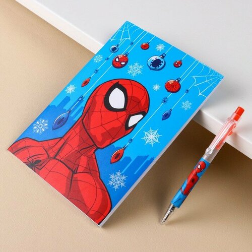 Канцелярский набор "С новым годом", блокнот А5, ручка, наклейки, Человек-Паук