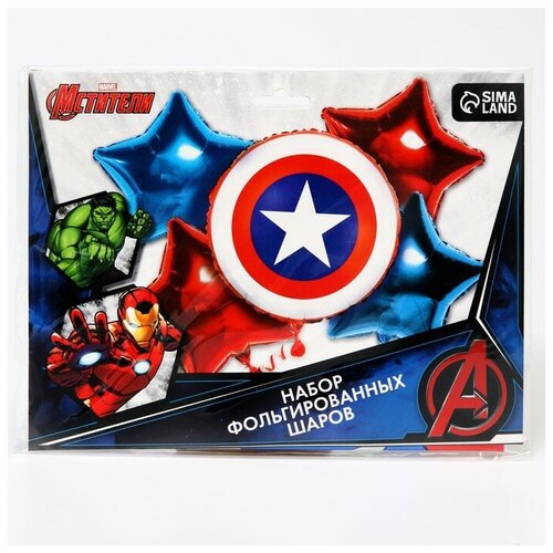 Набор фольгированных шаров "Капитан Америка", 4 звезды, Мстители (1шт.)