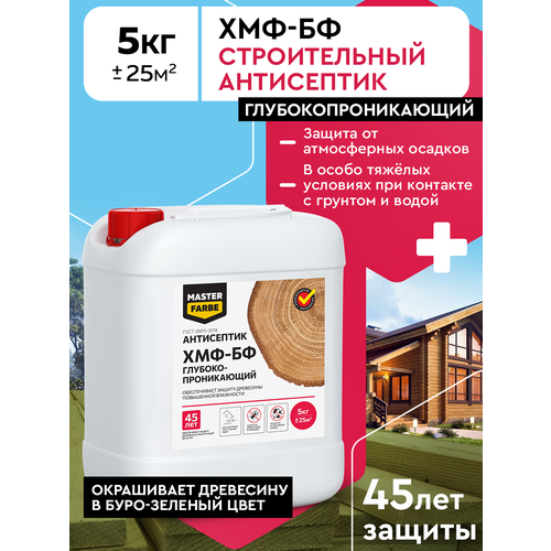 Антисептик водоотталкивающий глубокопроникающий для дерева ХМФ-БФ MASTERFARBE защита древесины повышенной влажности, 5 кг