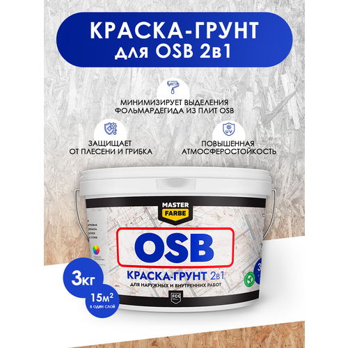 Грунт-краска акриловая супербелая Masterfarbe для OSB плит 3 кг