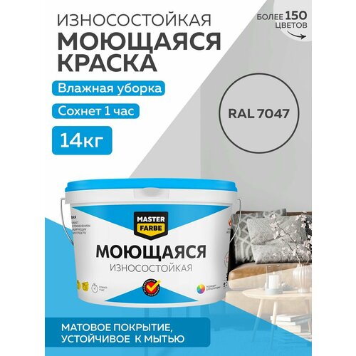 Краска MASTERFARBE акриловая моющаяся, цвет RAL 7047, 9л