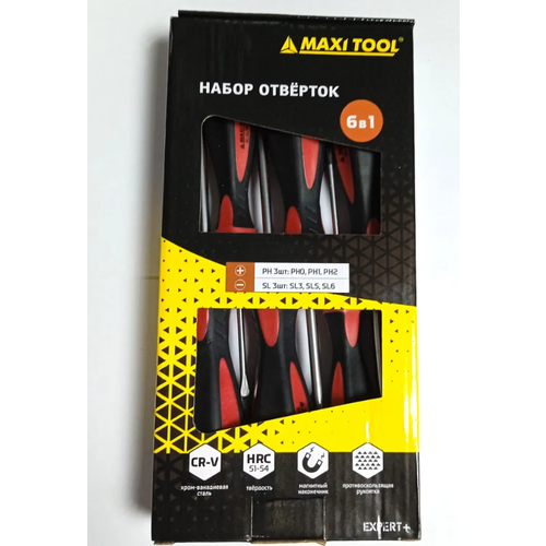 Отвертки в наборе 6 штук шлиц 6х100мм, шлиц 5х100мм, шлиц 3х75мм, крест №2х100мм, №1х75мм, №0х75 мм
