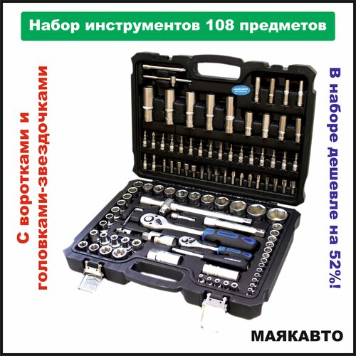 Набор инструментов 108 предметов, для авто в чемодане, 410806м, маякавто