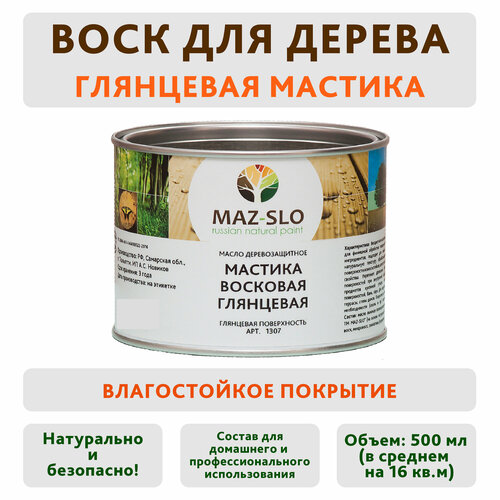 Воск для дерева MAZ-SLO - мастика глянцевая для паркета и столешниц, 500 мл