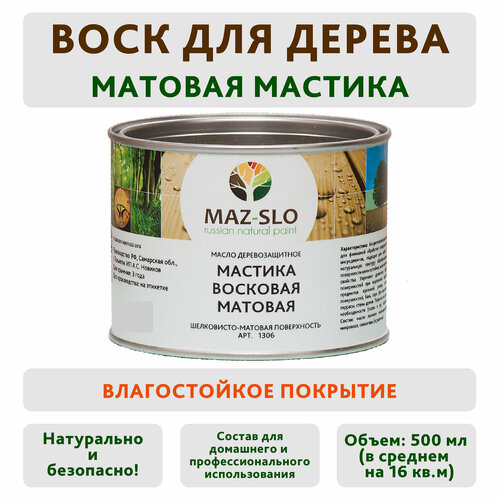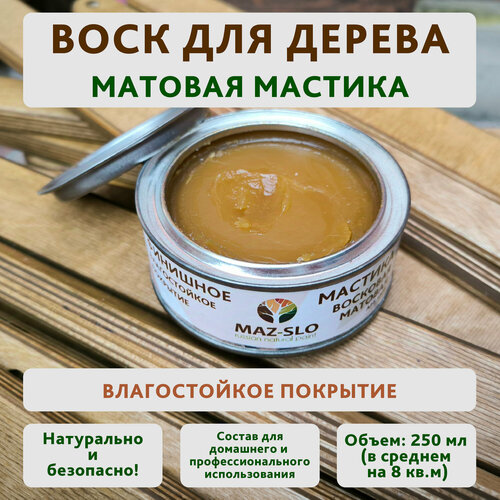 Воск для дерева MAZ-SLO мастика матовая для пола и мебели, без цвета, 250 мл