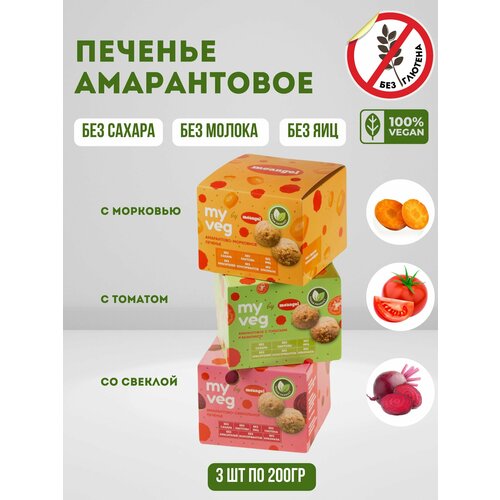 Печенье амарантовое с томатами и базиликом, морковное, свекольное без глютена, сахара, яиц, лактозы"My veg",( в наборе 3 шт по 200 гр)
