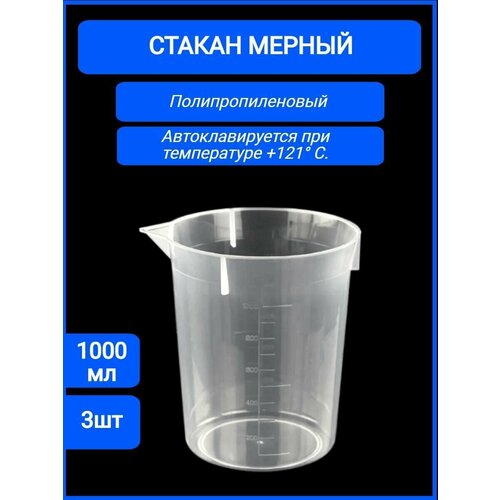Стакан лабораторный полипропиленовый 1000 мл, 3шт