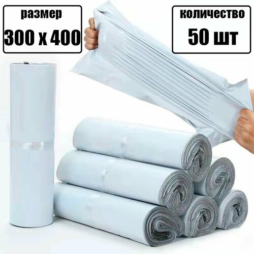 Курьерский пакет 300*400+40 без кармана, 50 штук, 50 мкм