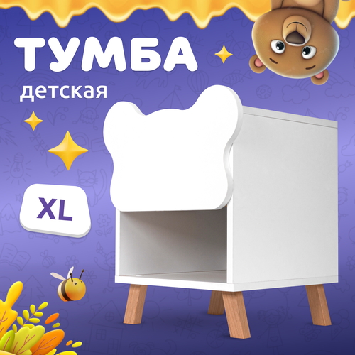 Тумба детская прикроватная белая MEGA TOYS / тумбочка в детскую комнату Мишка с выдвижным ящиком