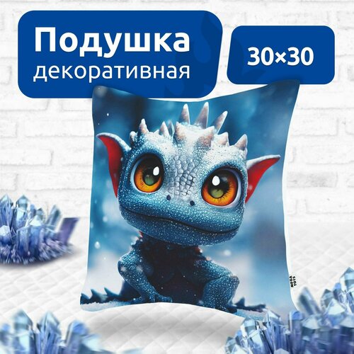 Подушка декоративная на диван для дома MEGA TOYS детская в подарок с принтом 30x30 Дракон снежный