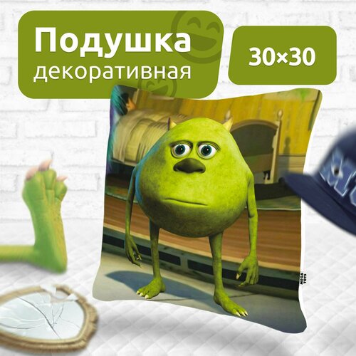 Подушка декоративная для дома с рисунком MEGA TOYS в подарок с принтом мема Майк Вазовски с лицом Салли 30x30 см