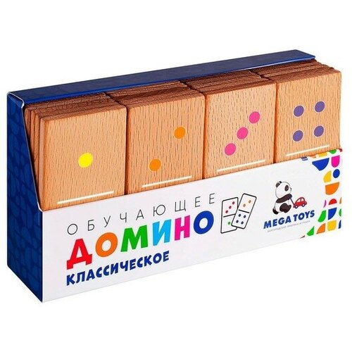 Домино детское Классическое деревянное логическое цветное MEGA TOYS умная настольная игра для малышей и детей от 3 лет