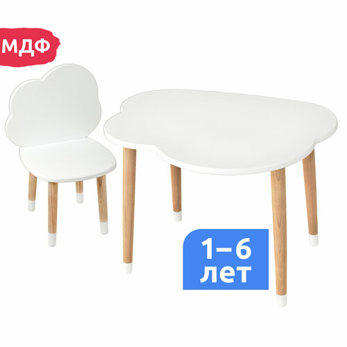 Детский стол и стул из дерева MEGA TOYS Облачко комплект деревянный столик со стульчиком / подарок на 1 годик девочке и мальчику