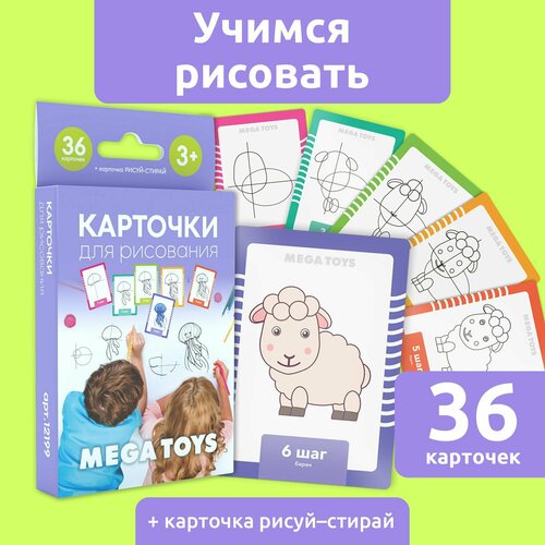 Набор для рисования детский "Учимся рисовать" пиши стирай MEGA TOYS обучение для малышей / Развивающие трафареты: животные, предметы, транспорт