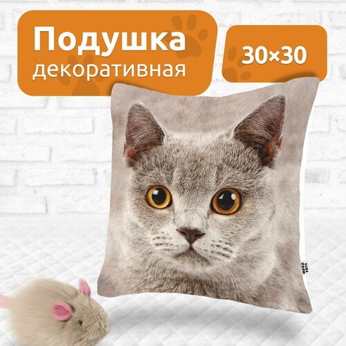 Подушка декоративная на диван для дома MEGA TOYS детская в подарок с принтом 30x30 Серый кот
