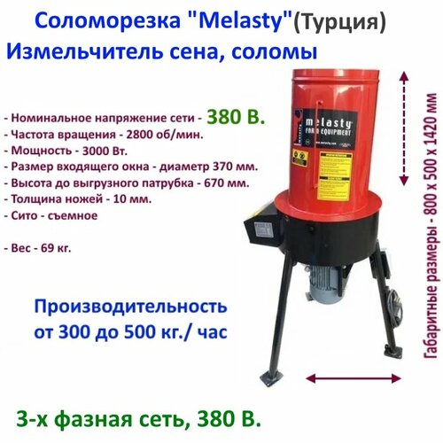 Сенорезка/измельчитель на 380 вольт, Melasty K500 сена, соломы, с производительностью до 500 кг./час, двигатель 3000 Вт, напряжение 380 вольт.