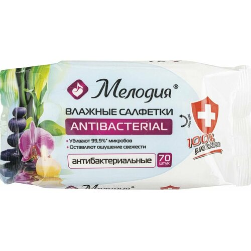 Салфетки влажные 70 шт., МЕЛОДИЯ, антибактериальные, 129897 100026779572