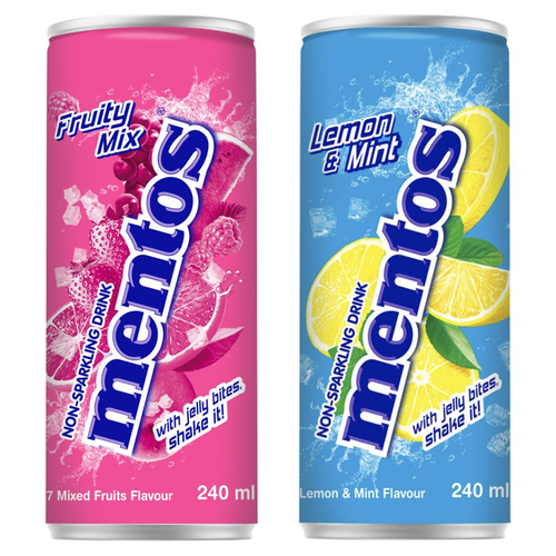 Негазированный напиток Mentos Fruity Mix, Lemon & Mint с кусочками кокосового желе 2 шт. по 240 мл Корея