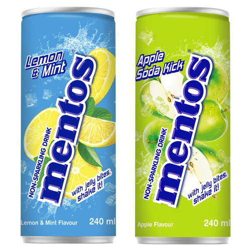 Негазированный напиток Mentos Lemon & Mint, Apple Soda Kick с кусочками кокосового желе 2 шт. по 240 мл Корея