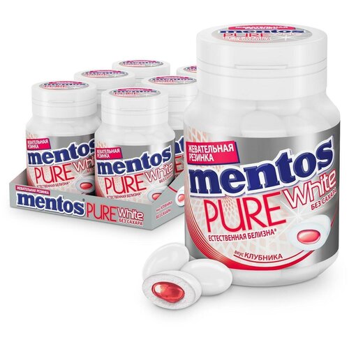 Жевательная резинка Mentos Pure White, Ментос вкус Клубника, в банке, 6 шт по 54 г